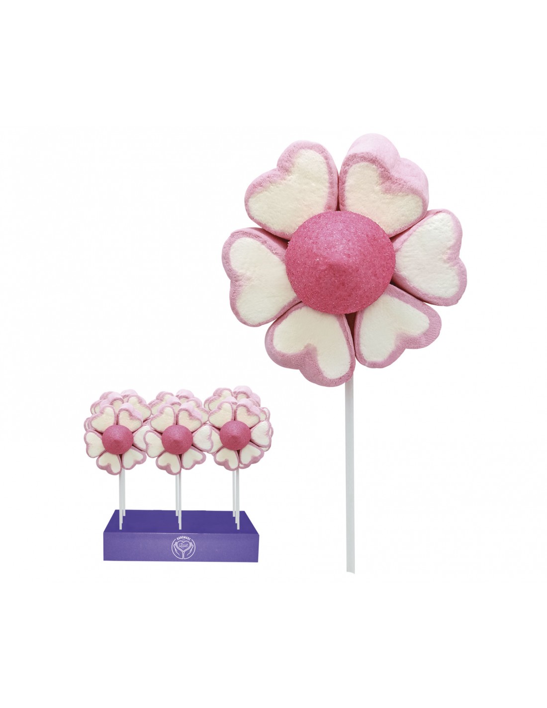 Manual Confectionery marshmallow and jellies with flower hearth lollipop.