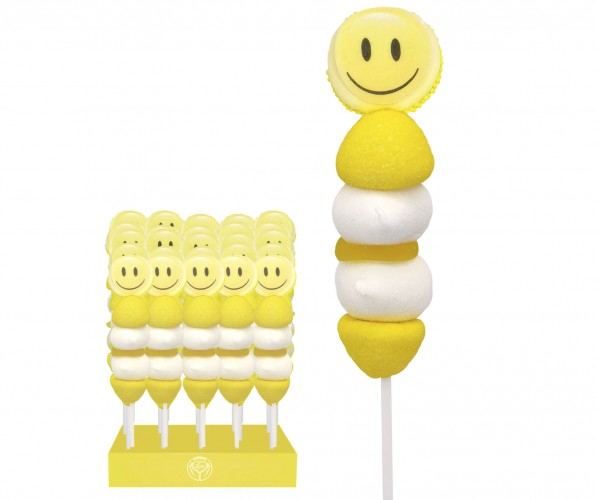 Manual Confectionery marshmallow and jellies with shape smiley kebab.