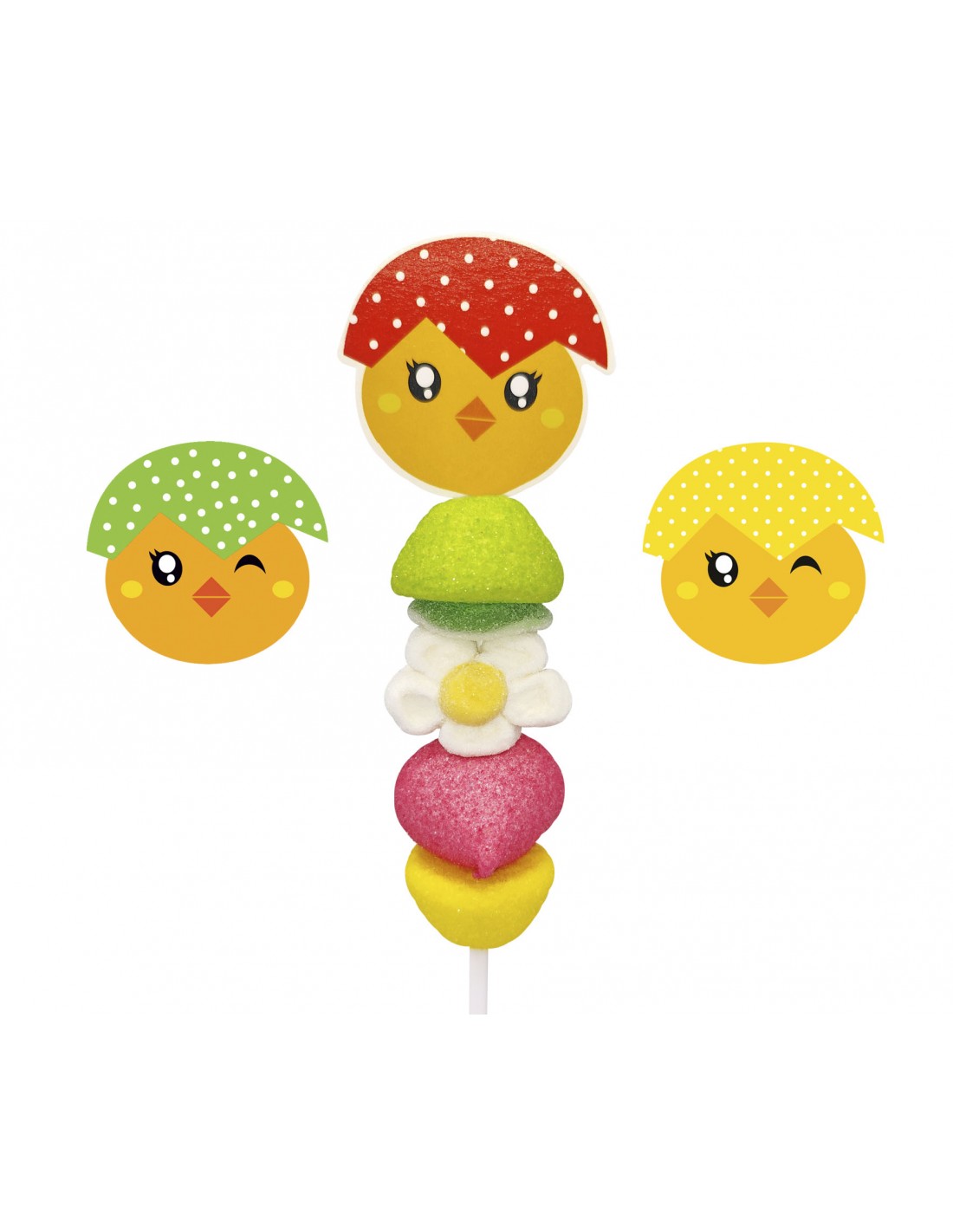 Manual Confectionery marshmallow and jellies with shape baby chicken kebab.