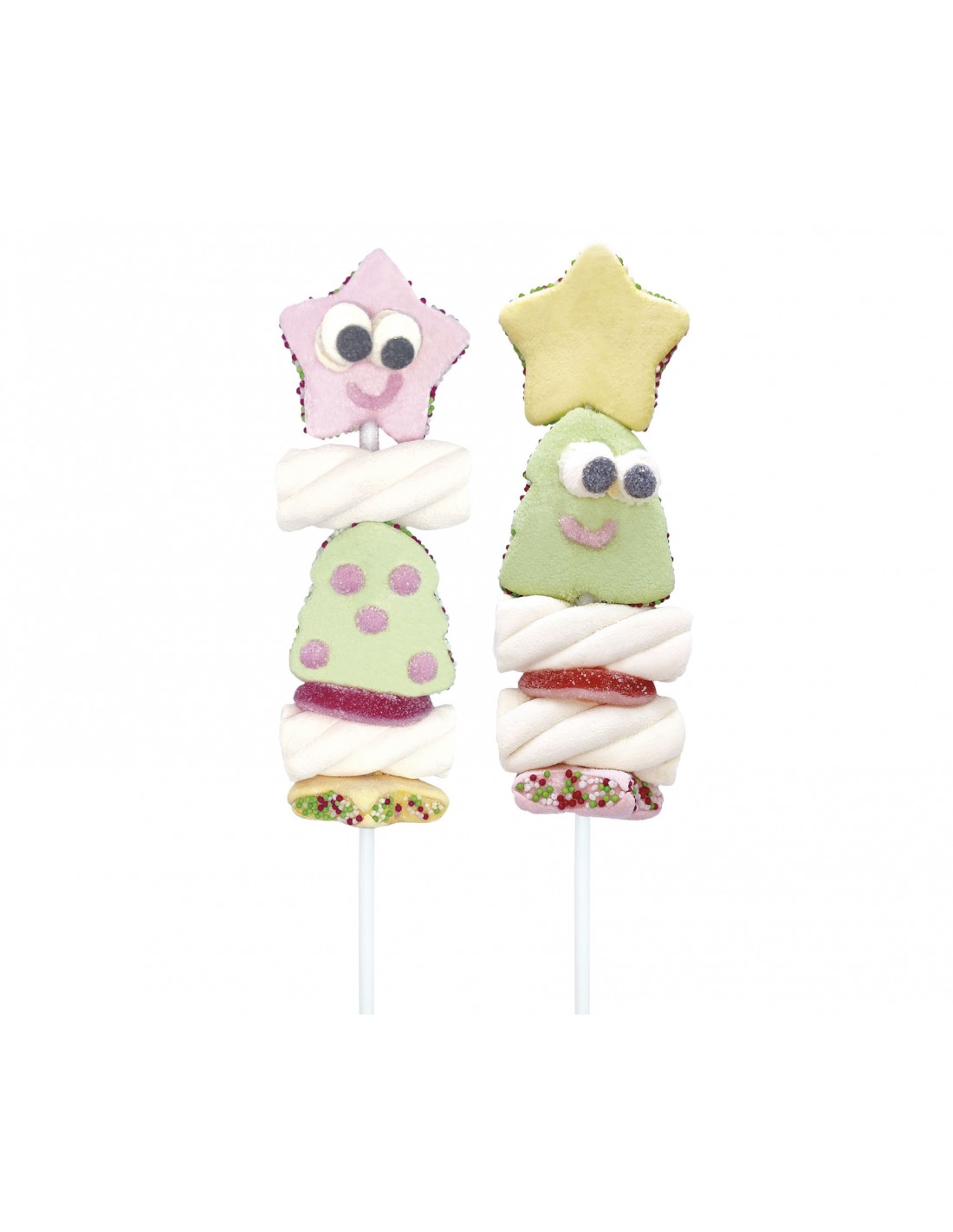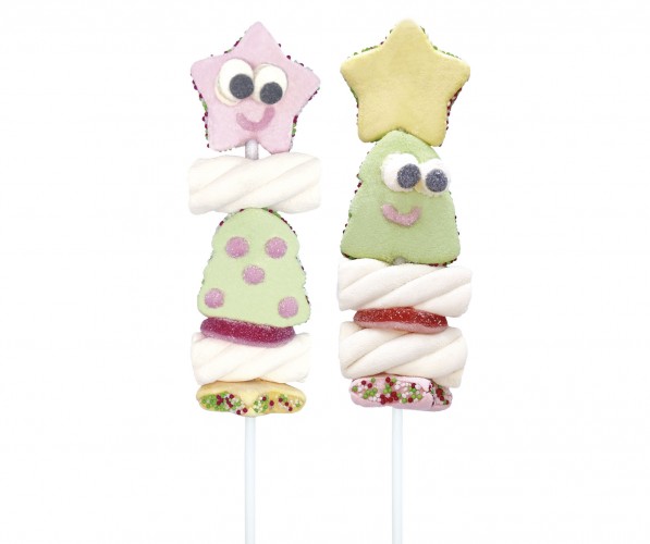 Assortment marshmallow and jellies brochette with marshmallow star on top and anisettes