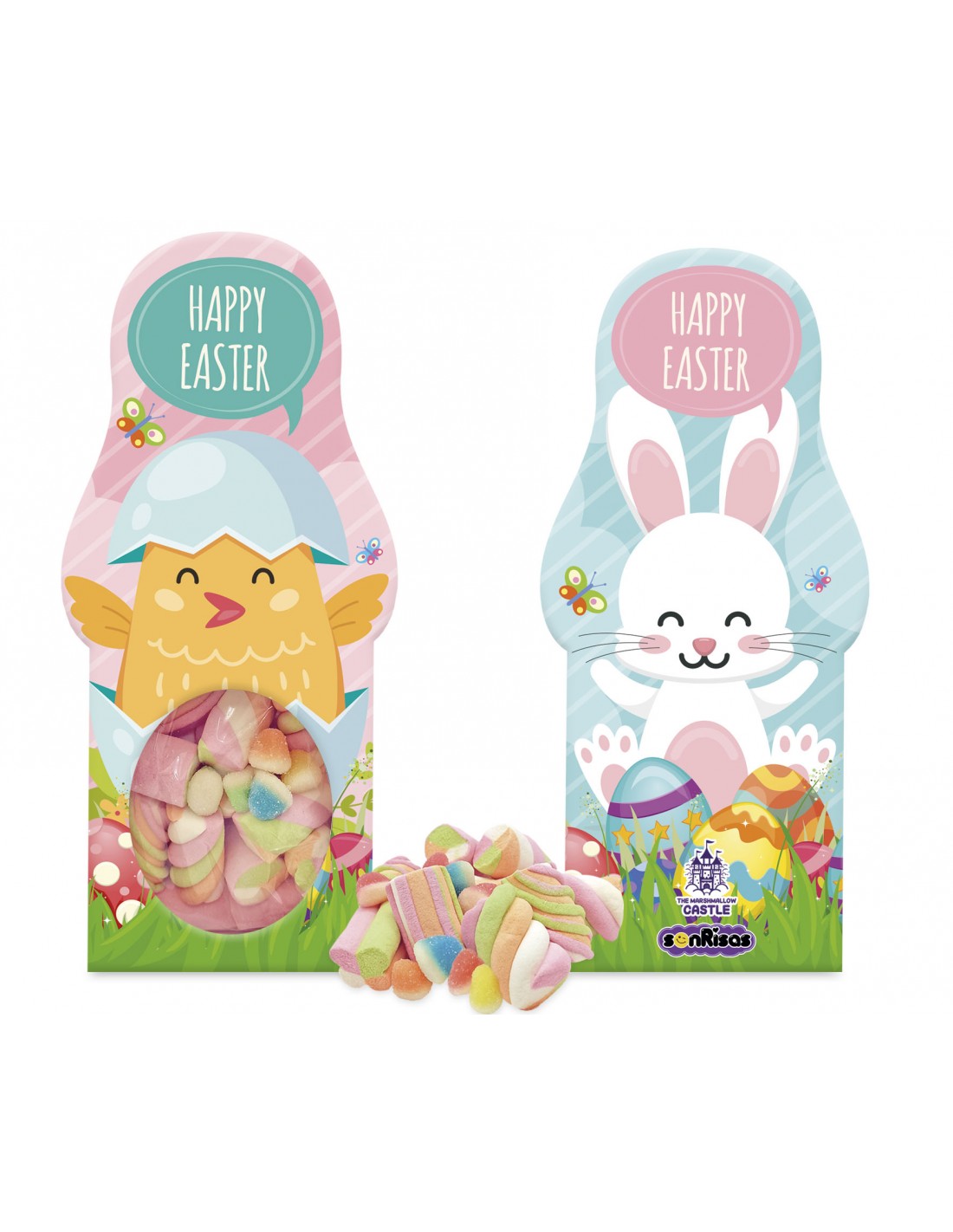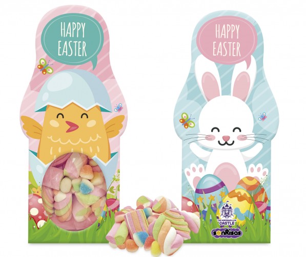 Rabbit silhuette box filled with marshmallow and jellies