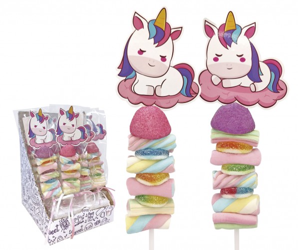 Manual Confectionery marshmallow and jellies with unicorn decoration.