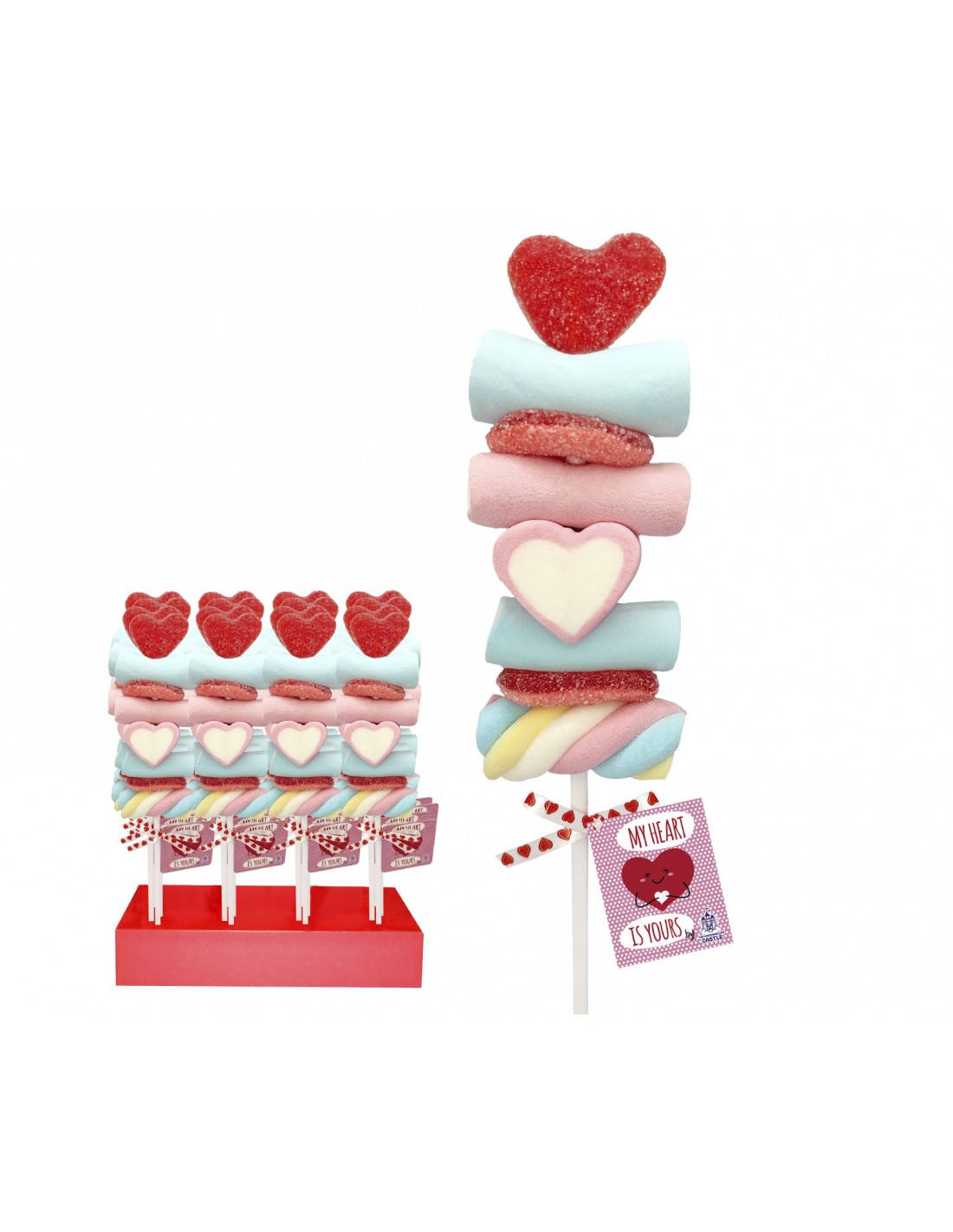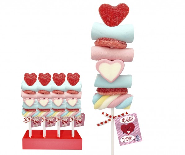 Manual Confectionery marshmallow and jellies with shape love kebab.